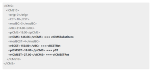 Na imagem abaixo, temos o exemplo de um arquivo XML, com os detalhes do Imposto.